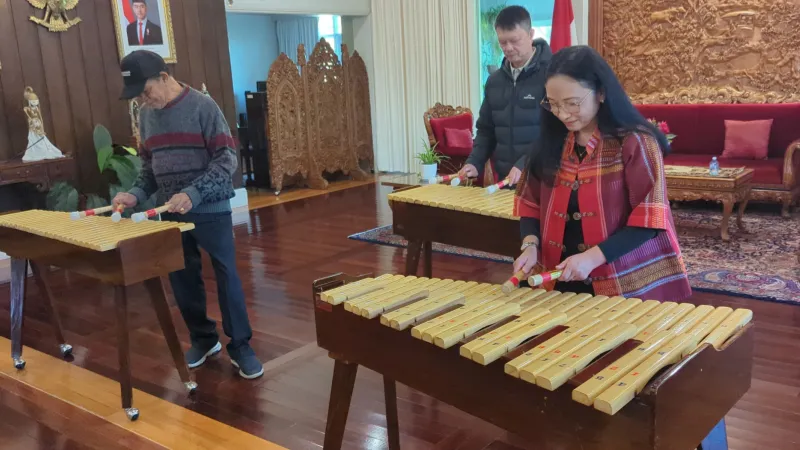 Dalam momen tersebut, Ibu Duta Besar berkesempatan memainkan kolintang untuk pertama kalinya, membawakan lagu “Waltzing Matilda”, “Hari Kartini”, dan “Bengawan Solo” bersama para seniman.